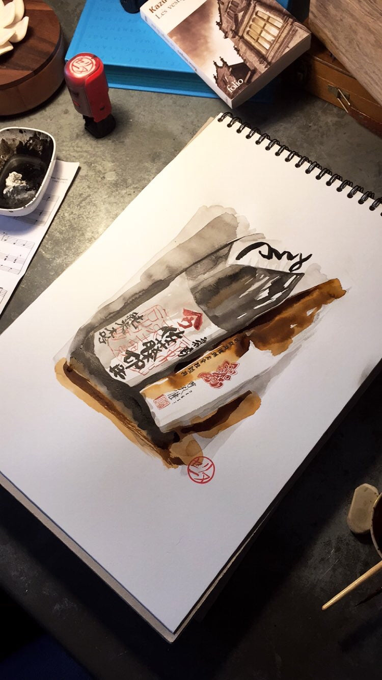 Encres et Aquarelles Callilygraphies™, réalisées dans l’esprit calligraphies, d’un carnet de voyage...