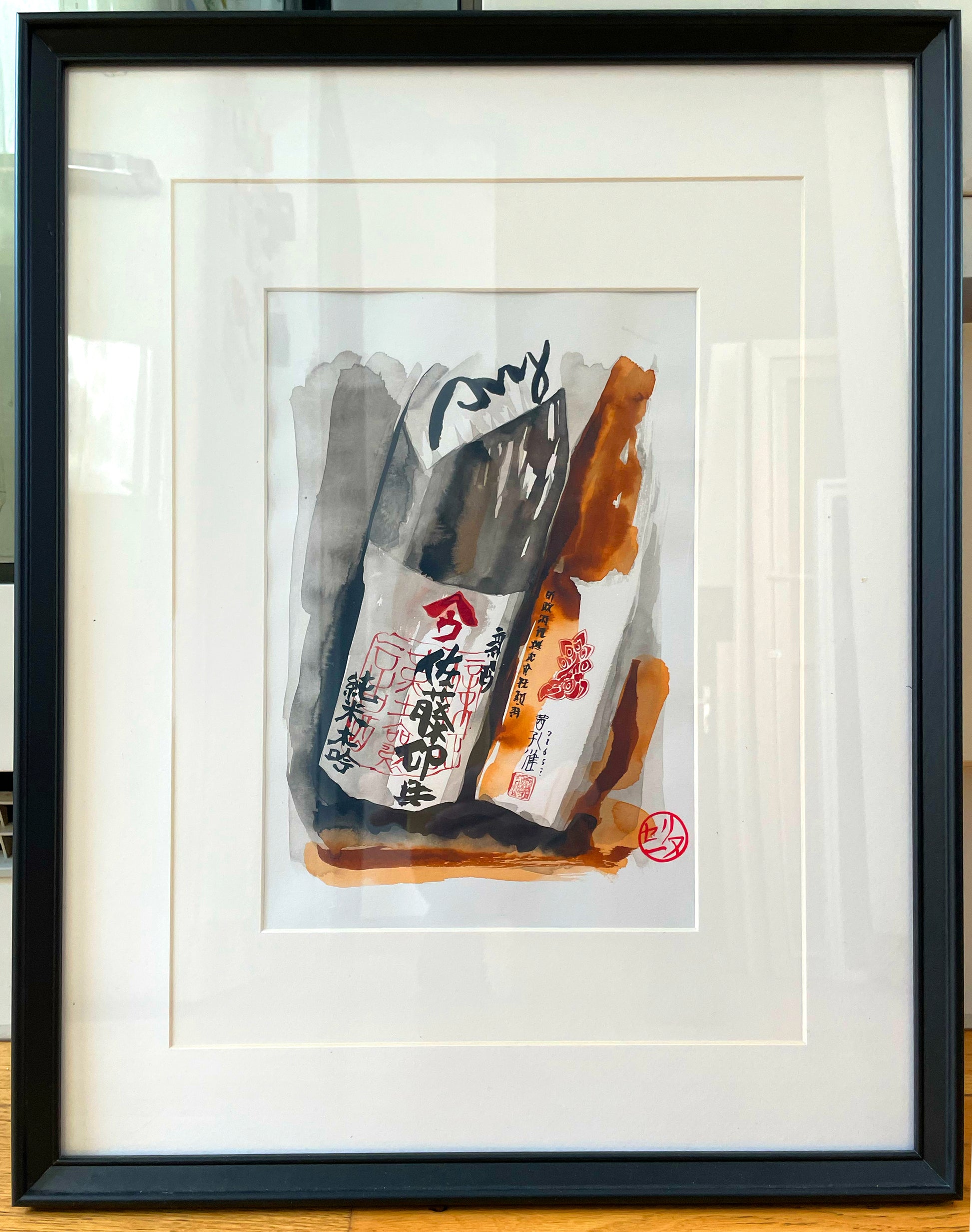 2 bouteilles de saké inclinées - Œuvre originale