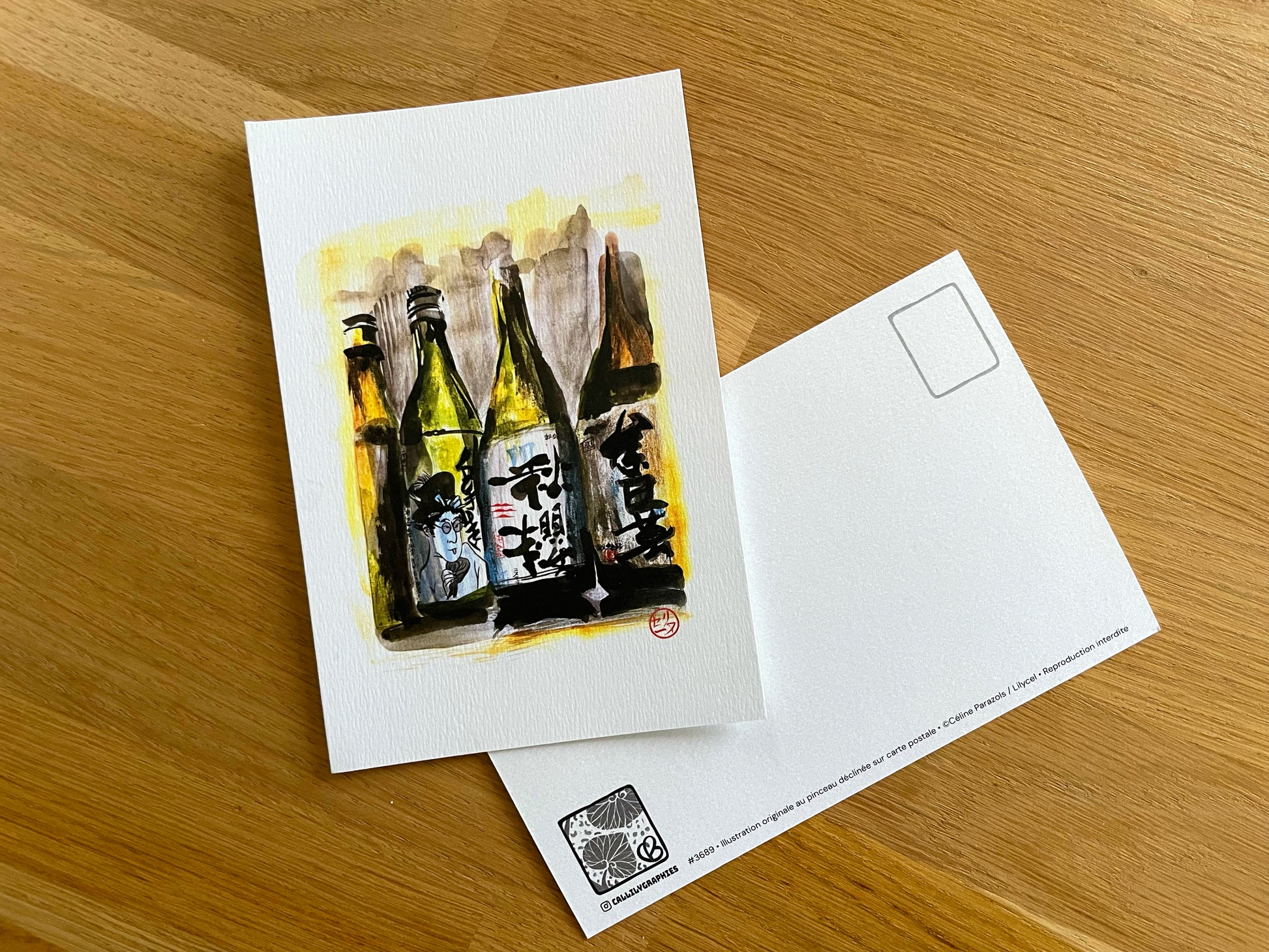 Carte postale imprimée en France à Nice sur papier rives blanc texturé au format 100 x 150 mm, 250 g. Esprit calligraphies d’un carnet de voyage au Japon. Une collection poétique à offrir ou à encadrer.