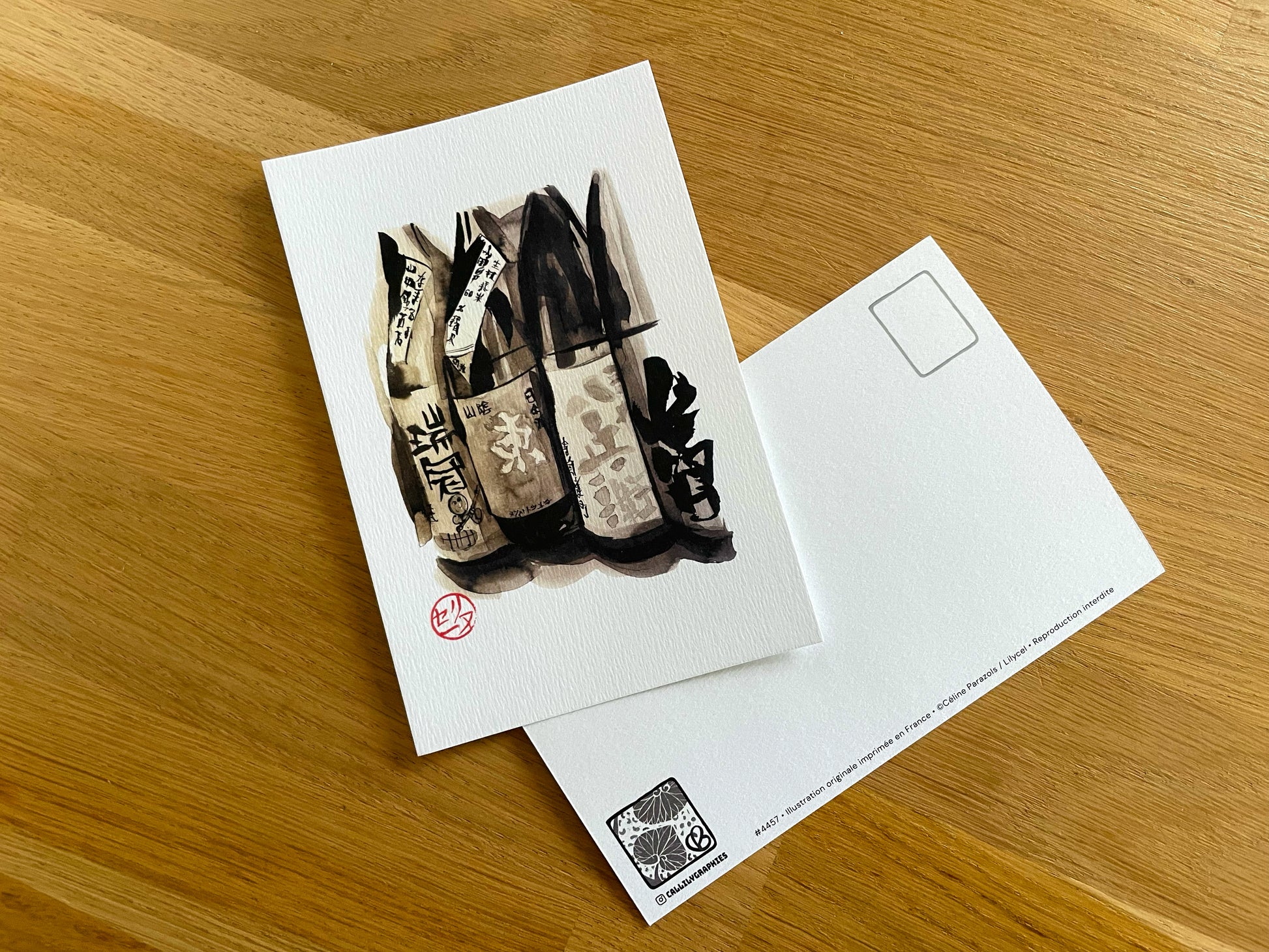 Carte postale imprimée en France à Nice sur papier rives blanc texturé au format 100 x 150 mm, 250 g. Esprit calligraphies d’un carnet de voyage au Japon. Une collection poétique à offrir ou à encadrer.