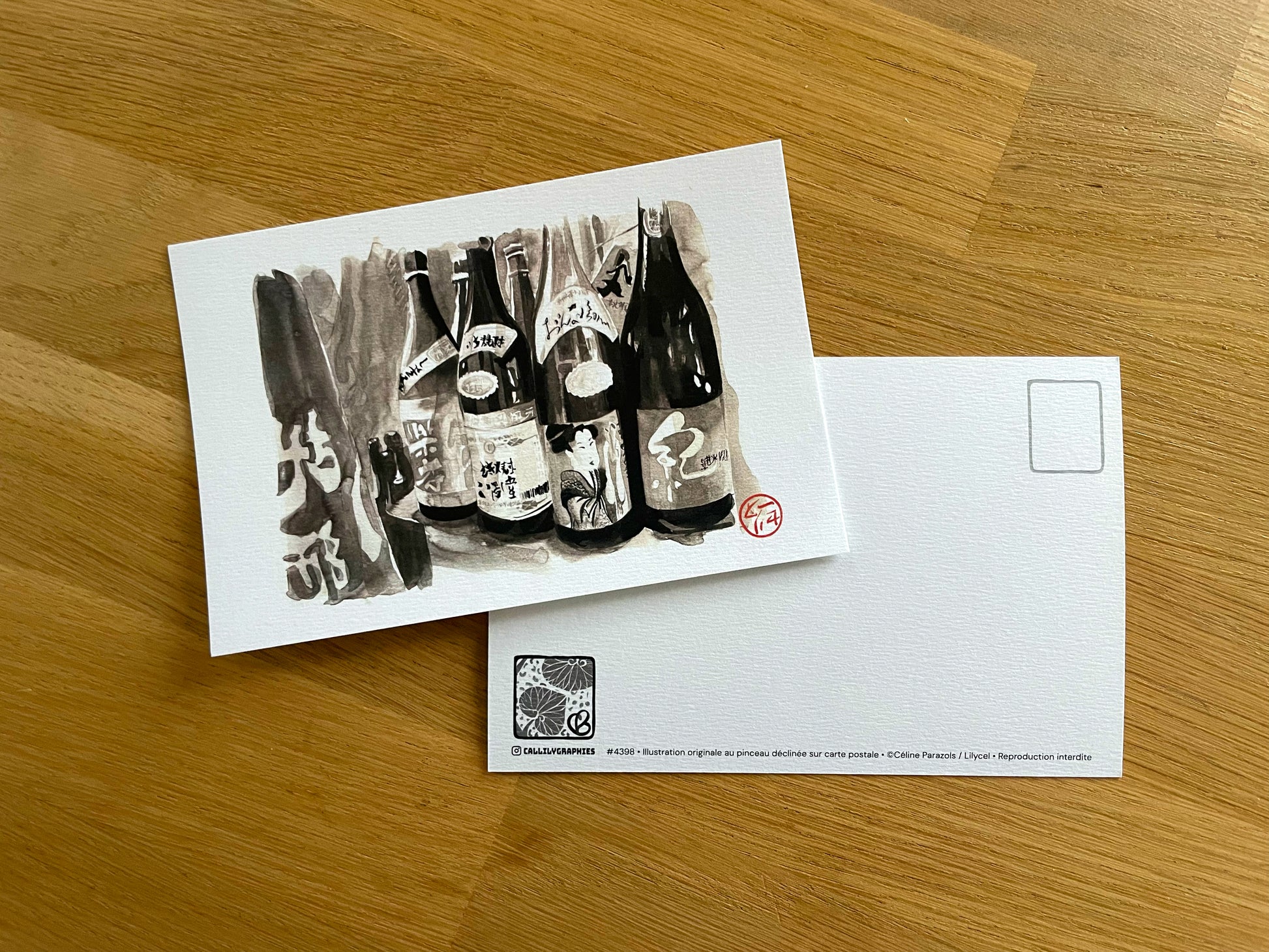 Carte postale imprimée en France à Nice sur papier rives blanc texturé au format 100 x 150 mm, 250 g. Esprit calligraphies d’un carnet de voyage au Japon. Une collection poétique à offrir ou à encadrer.