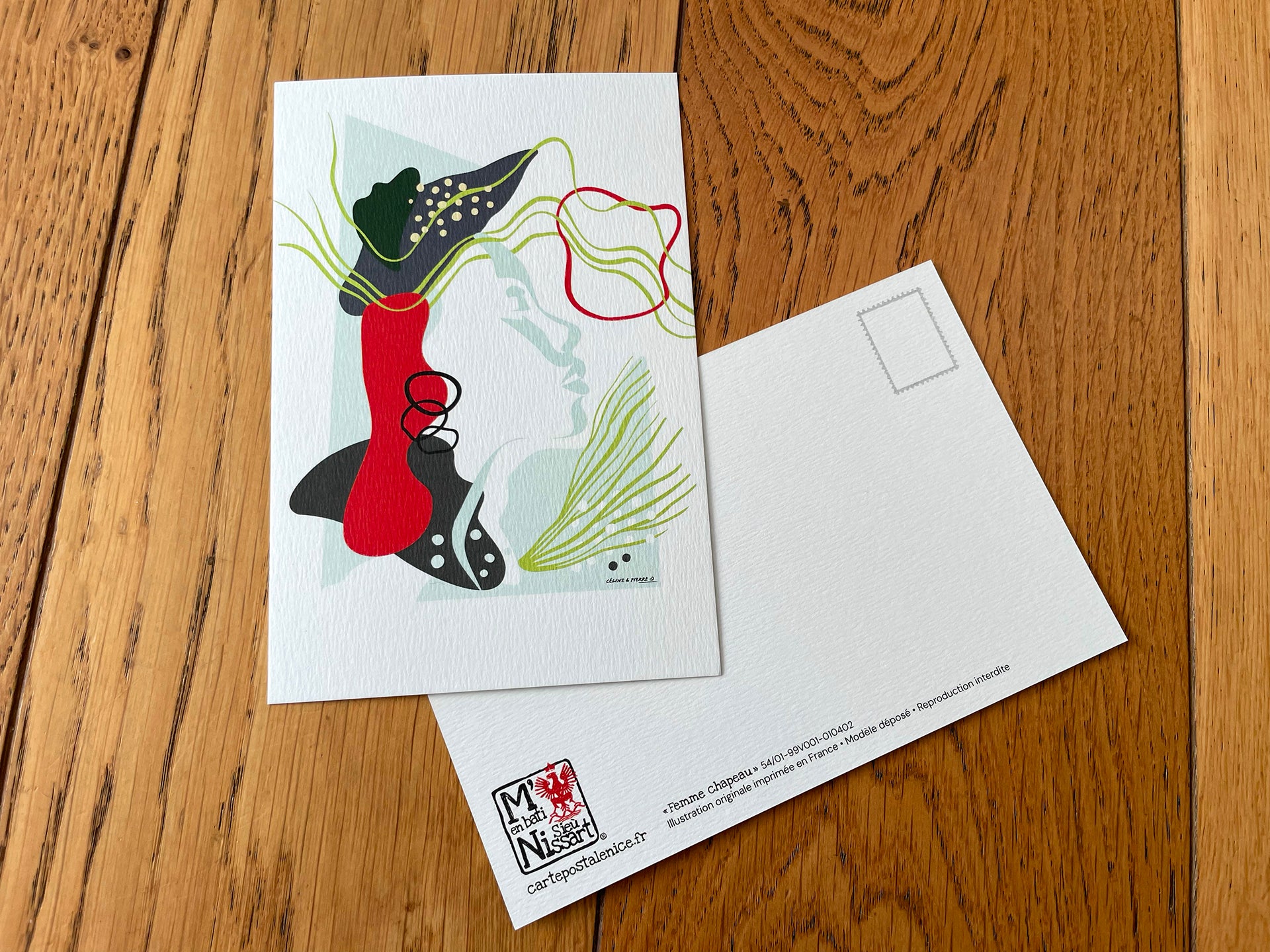 Carte postale imprimée en France à Nice sur papier rives blanc texturé. Format 150 x 100 mm, 320 g. L’esprit “M’en Bati Sieù Nissart®”, marque déposée, à offrir ou encadrer.