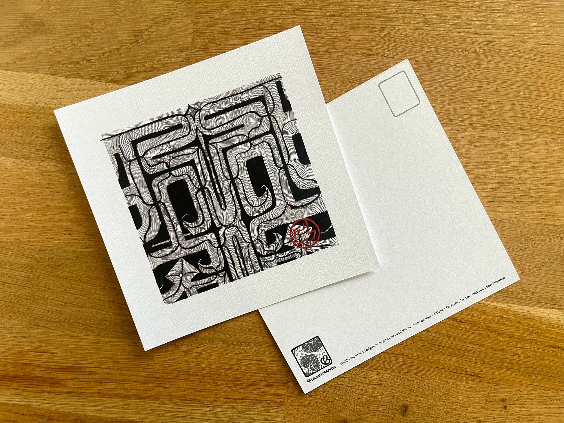 Carte postale imprimée en France à Nice sur papier rives blanc texturé au format 150 x 150 mm, 250 g. Esprit calligraphies d’un carnet de voyage au Japon. Une collection poétique à offrir ou à encadrer.