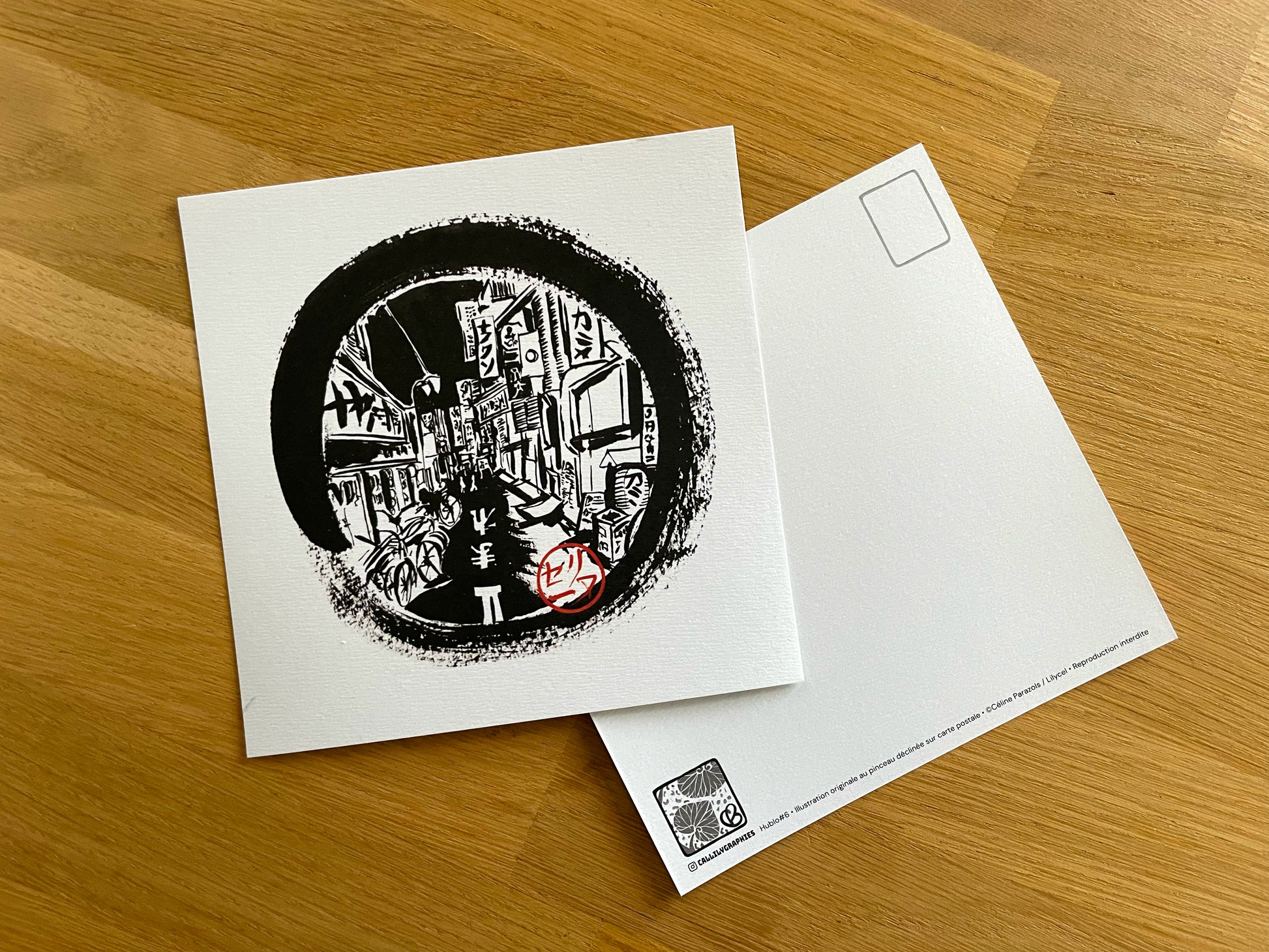 Carte postale imprimée en France à Nice sur papier rives blanc texturé au format 150 x 150 mm, 250 g. Esprit calligraphies d’un carnet de voyage au Japon. Une collection poétique à offrir ou à encadrer.