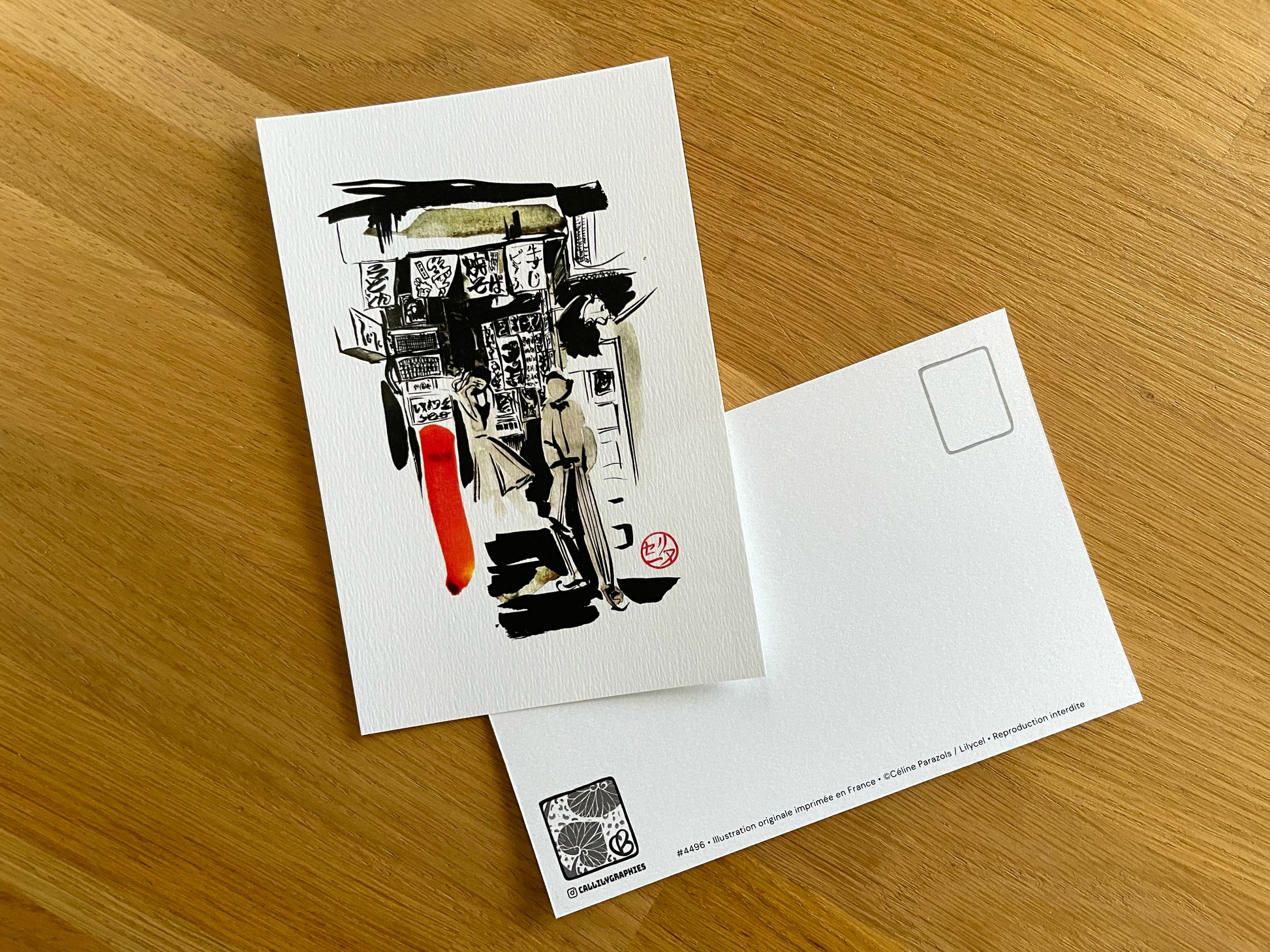 Carte postale imprimée en France à Nice sur papier rives blanc texturé au format 100 x 150 mm, 250 g. Esprit calligraphies d’un carnet de voyage au Japon. Une collection poétique à offrir ou à encadrer.