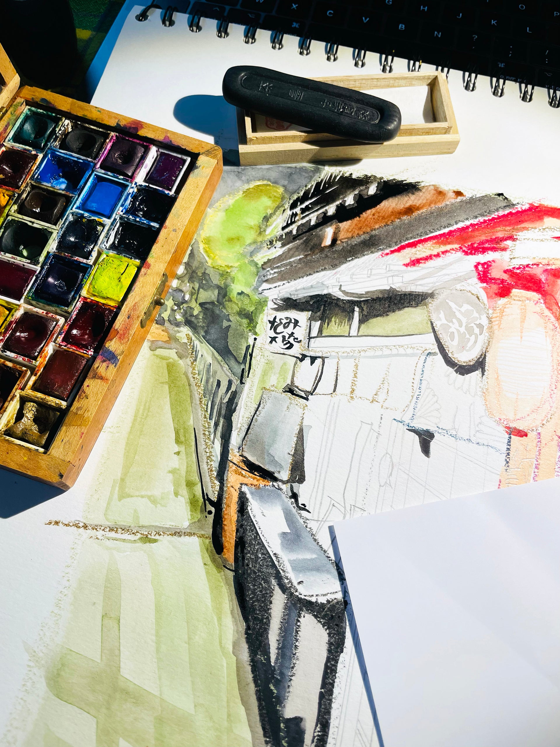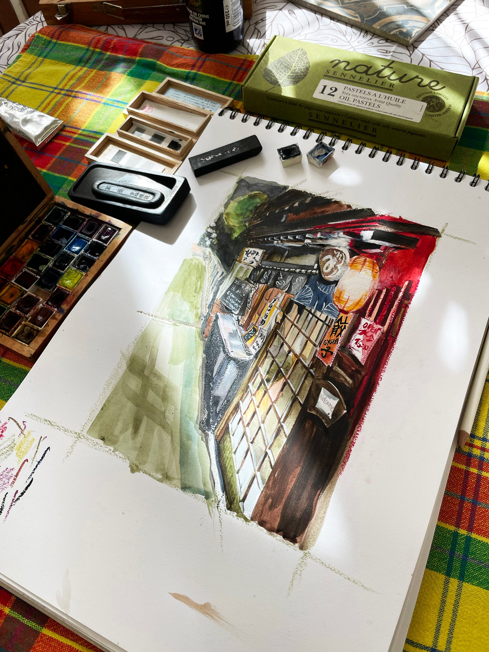Carte postale d’art, carnet de voyage au japon les Callilygraphies™, d’après encre, aquarelle et pastel, originale. Calligraphie imprimée en France à Nice sur papier rives blanc texturé au format 100 x 150 mm, 250 g. Une collection poétique à offrir ou encadrer.